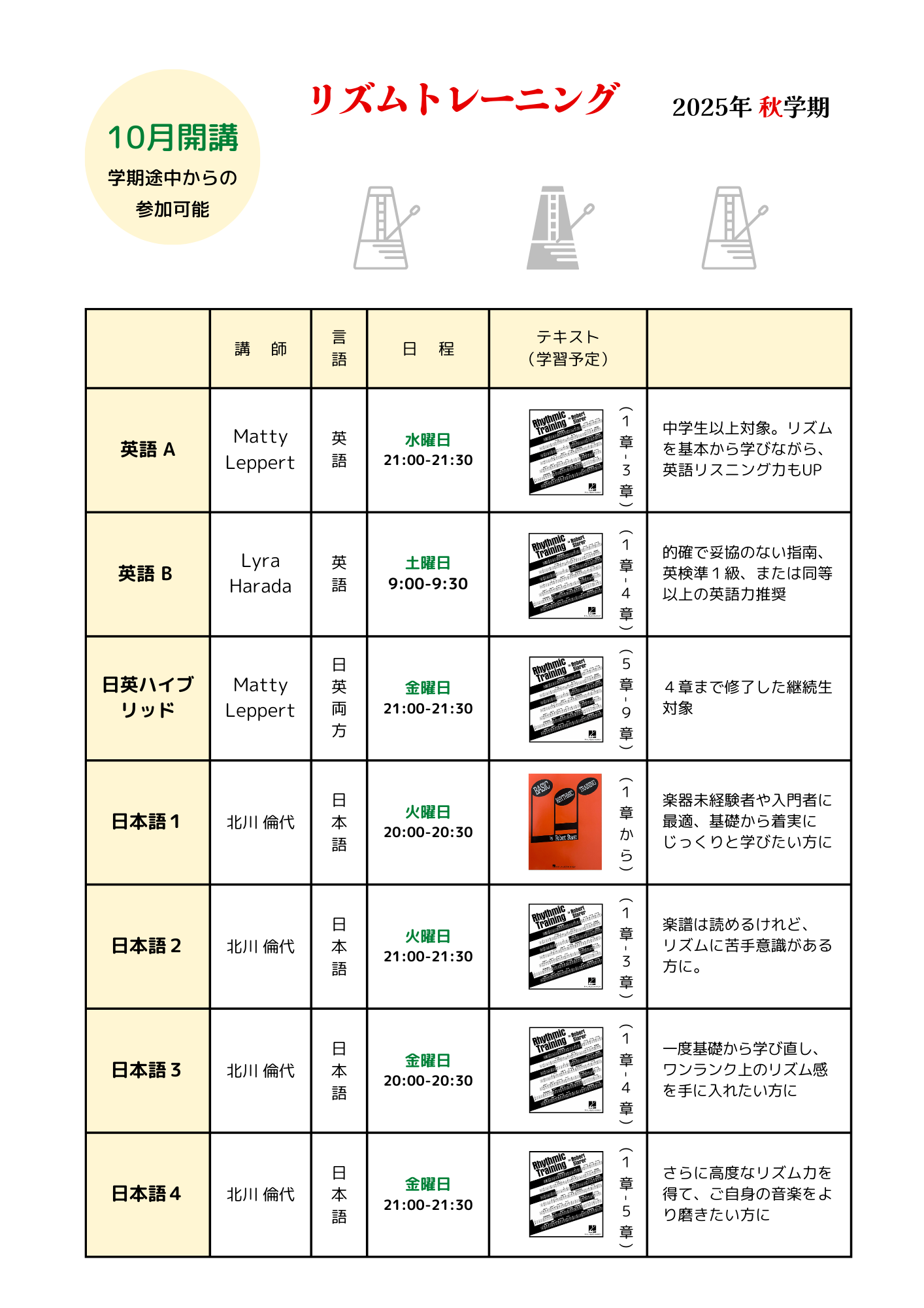 リズムトレーニングクラス