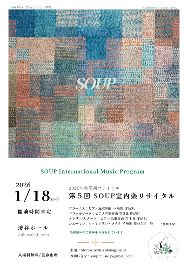 次回「室内楽リサイタル」は、2026年1月18日(日)渋谷ホールにて行います→